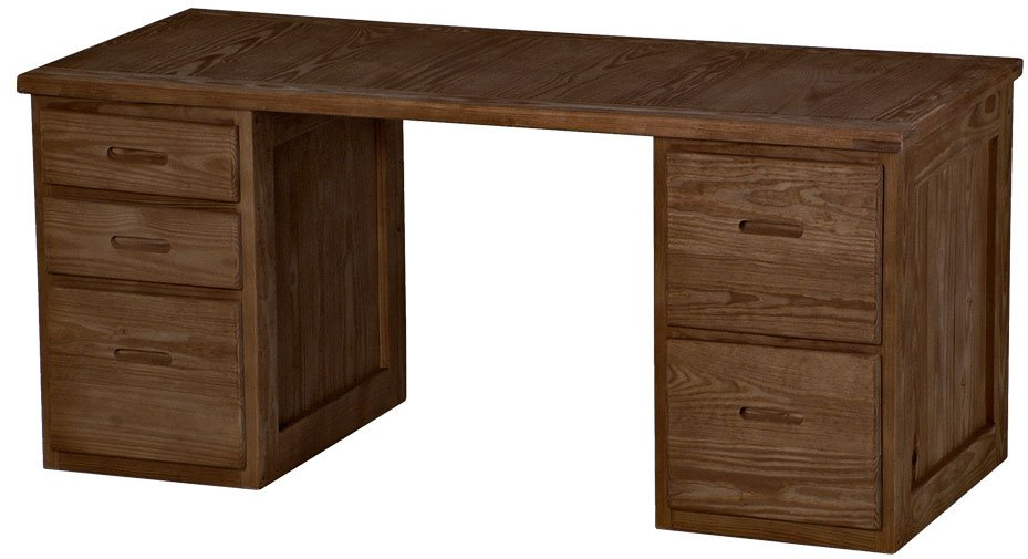 Home Office desk with 2 file drawers on the right side and 3 drawers on the left side. Consider adding a lacquer finish on the top for increased moisture resistance and cleanability. Desk shelves are available to add to your desk.Read More