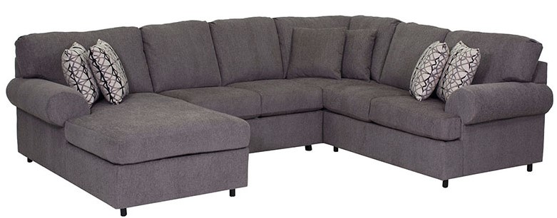 The Dynasty 1414 Gray Sectional Sofa features a left facing chaise and rolled arms.Read More