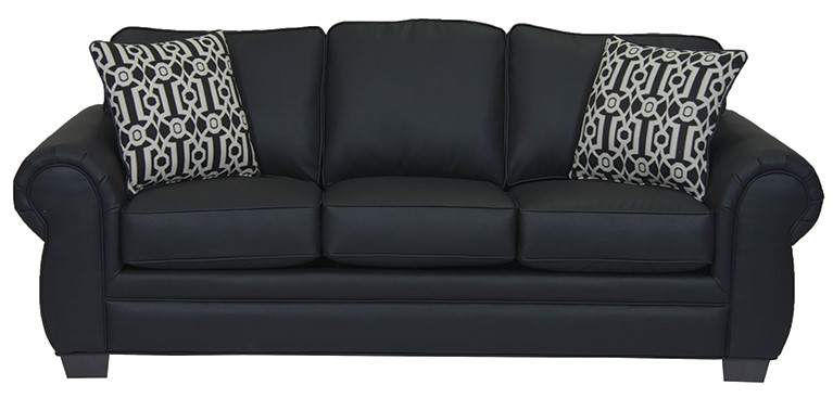 The Dynasty 4049 Black Sofa features rolled arms, tapered block legs and fits 3 people comfortably.Read More