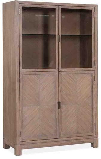 The Magnussen Home® Ainsley Display Cabinet features 2 bottom wood drawers and 1 Felt lined drawer, 1 Adjustable wood shelf behind the doors, and a 3-way Touch lighting control. Side mount ball bearing guides and a beautiful finish complete the piece.Read More