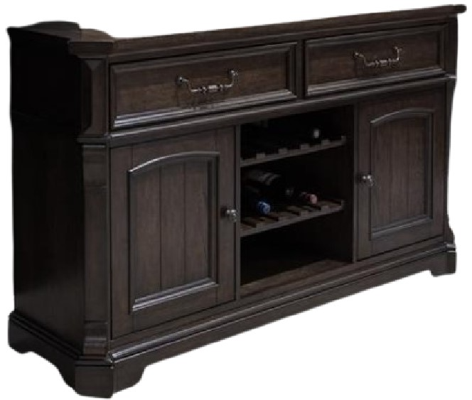 The Havenbrook credenza features a rich tobacco-toned wood finish with rustic pine solids and veneers, clean lines, and ample storage through a combination of drawers and cabinets. This credenza blends rustic warmth with refined craftsmanship for elegant living areas.Read More