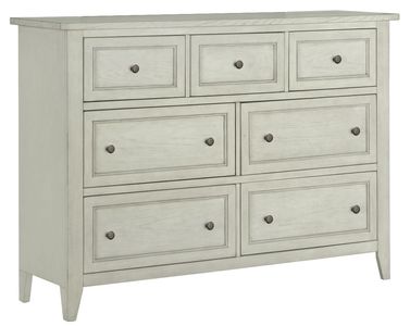 A fresh Weathered White finish on cathedral ash veneers and hardwoods contrasts simple Weathered Bronze pulls to create timeless comfort in Raelynn. Traditional and transitional at once, Raelynn is the ideal cottage collection that is equally as at home in the suburbs.