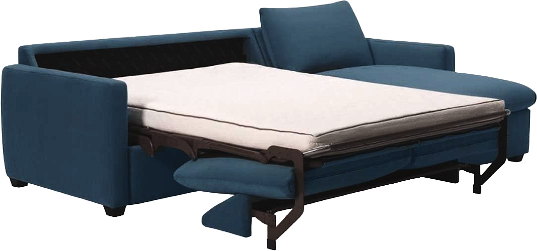 Italian designed, spring-loaded sleeper mechanism with 4.5" memory foam mattress with gel topper and covered in a plush quilted ticking. Mattress is supported by a heavy gauge steel grid and synthetic webbing.