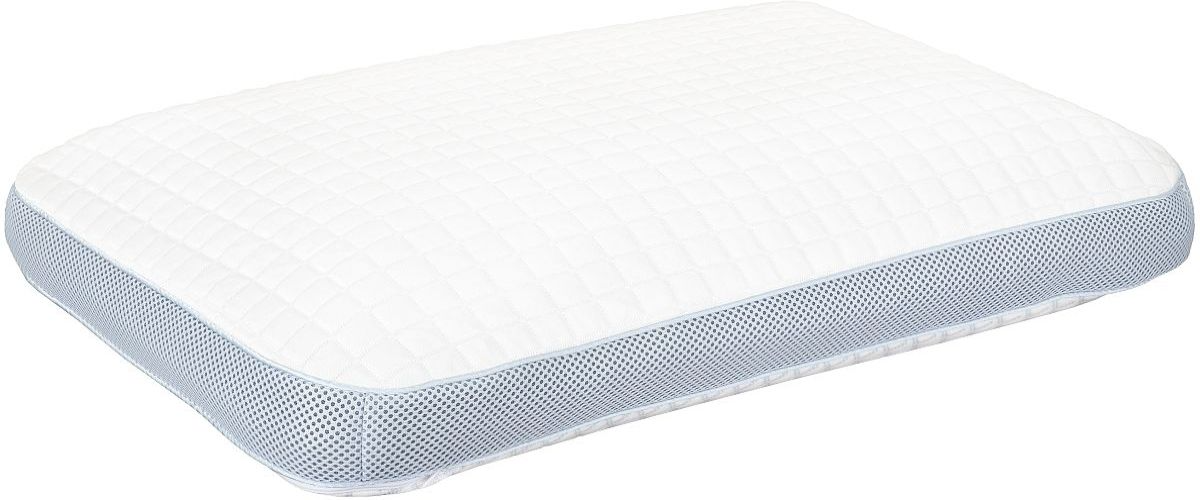 Stay cool and comfortable all night with the Cool ice gel-infused memory foam pillow. The soft cover combines ice yarn and polyester for a refreshing touch, while the breathable 3D mesh border in chic blue enhances airflow.Read More