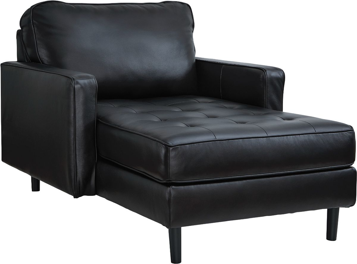 This chaise embodies timeless mid-century elegance with its linear design, sleek track arms and tapered legs. Genuine leather in the seating area adds a luxurious touch to the overall look. Experience endless style opportunities for today's living spaces.Read More