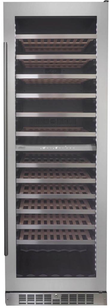 Storing a robust 129 bottles of wine in two different temperature controlled compartments. Set either compartment between 41F – 64F (5C – 18C) depending on your collection Our clean modern display is set at a 27 degree angle to make viewing easier.Read More